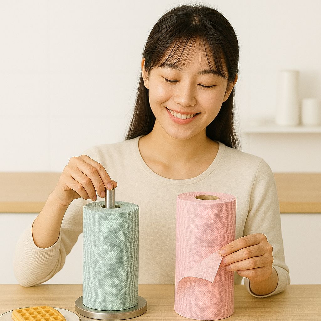 “Premium Microfiber Roll – tear off, wipe, and reuse for spotless cleaning every time.”